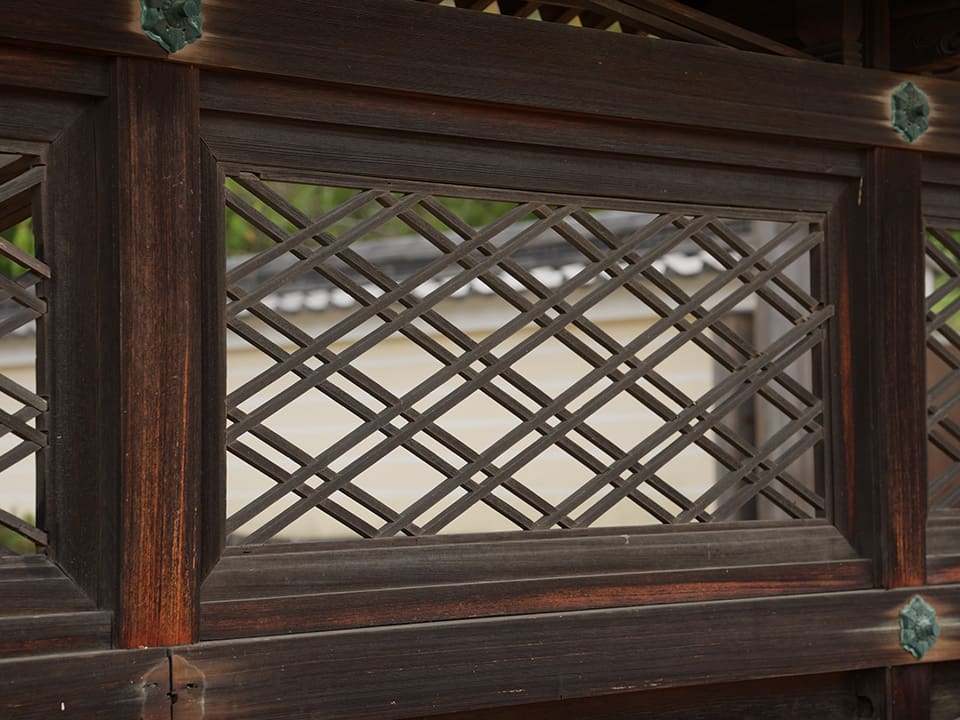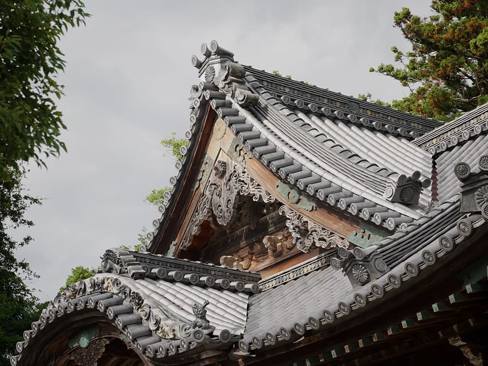 御廟拝堂は、屋根の前後に千鳥破風、正面の軒に唐破風を備えた外観と、構造材を露出させた内部を特徴とする建築であり、屋根瓦に記された安政5年(1858)の銘から、唐門透塀とともに幕末に建てられたことが確認されています。