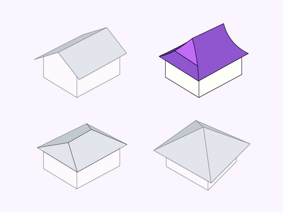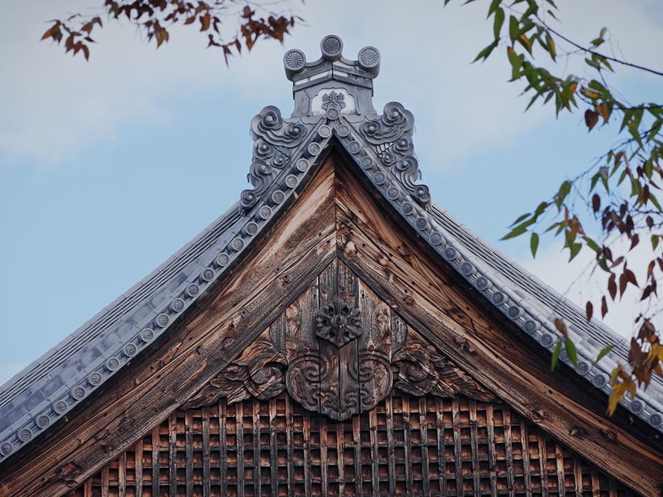 母屋を切妻造とし、その四方に廂を葺き下ろして一つの屋根としたもの。
