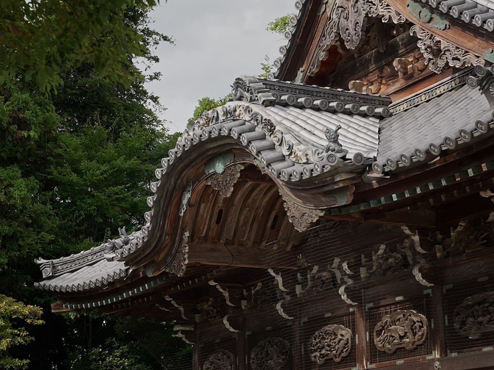 入母屋造、妻入、向拝には唐破風が設けられています。
