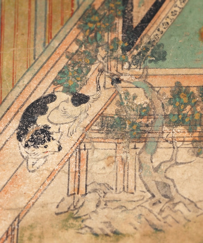 平安時代に成立した日本独自の絵画様式。物語絵や四季の風景などを明るい色彩と装飾性豊かな画法で描く。