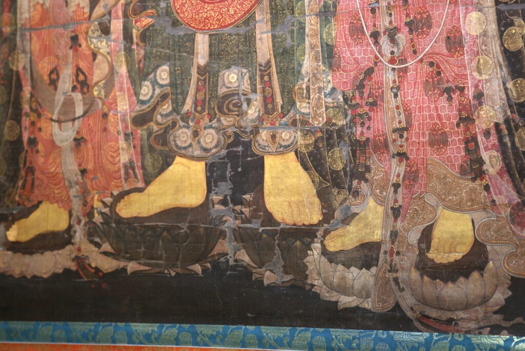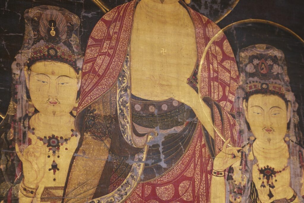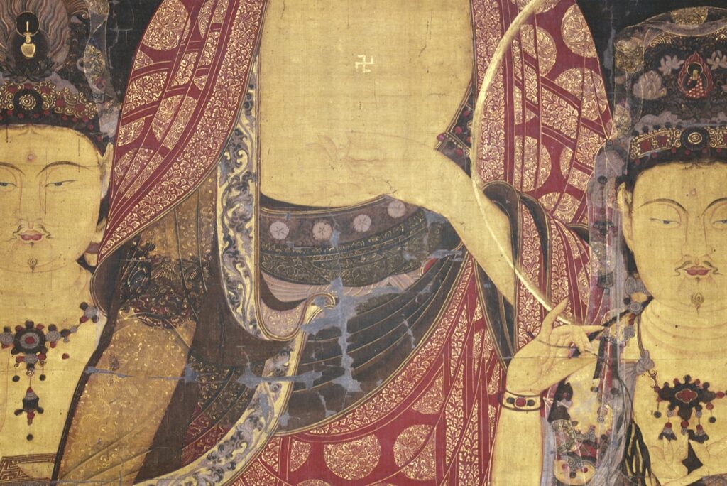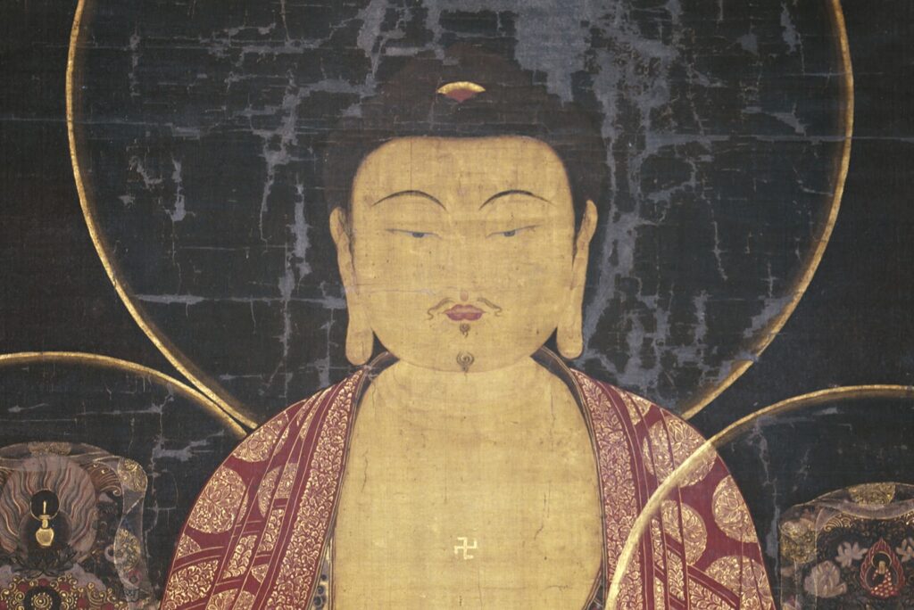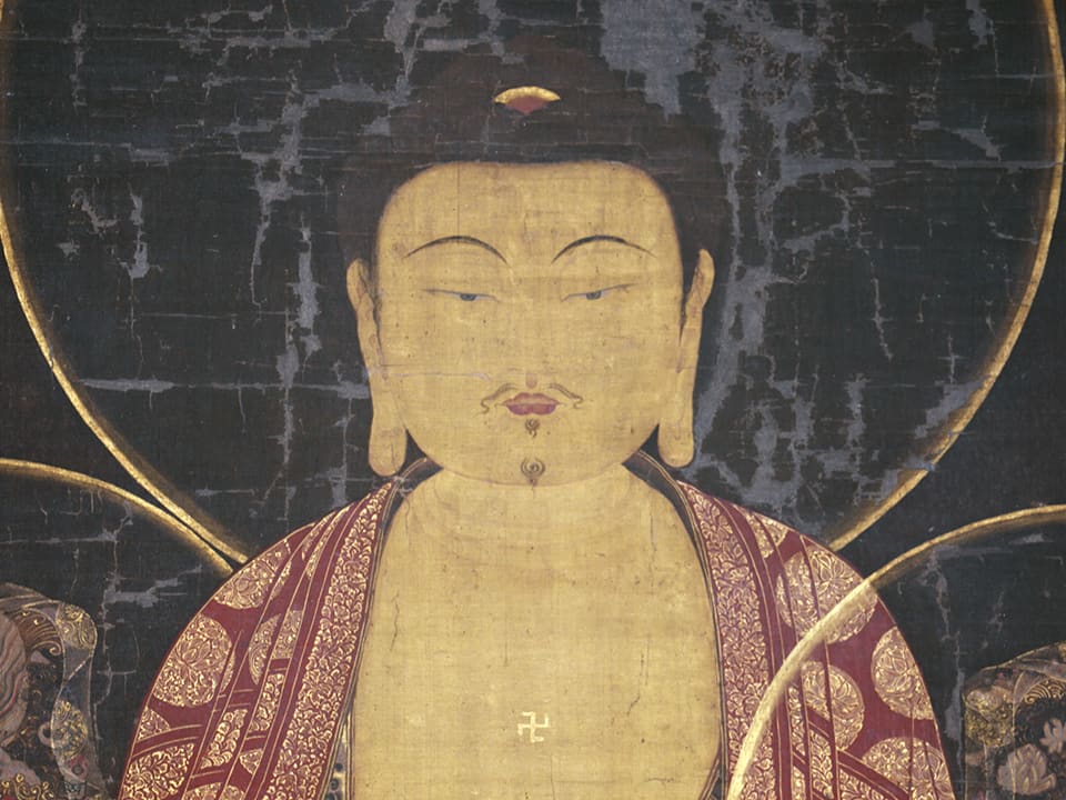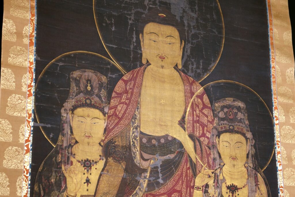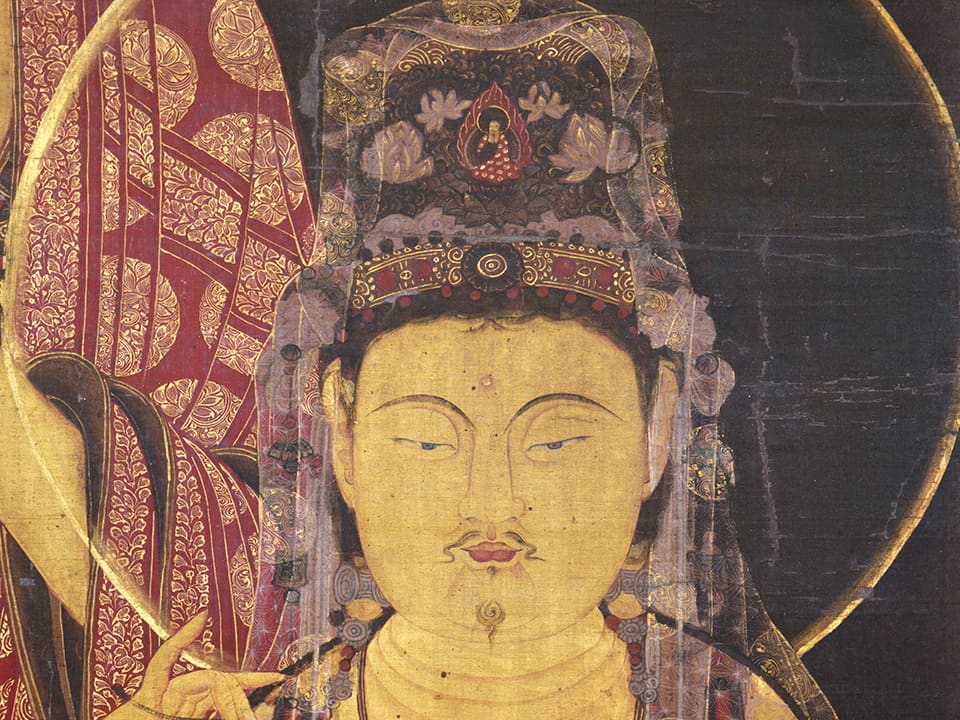 構図や装飾、色彩には、12〜13世紀の朝鮮・高麗時代の美術様式が色濃く反映されており、日本にもたらされた異国仏画の中でも、とりわけ貴重な遺品といえます。