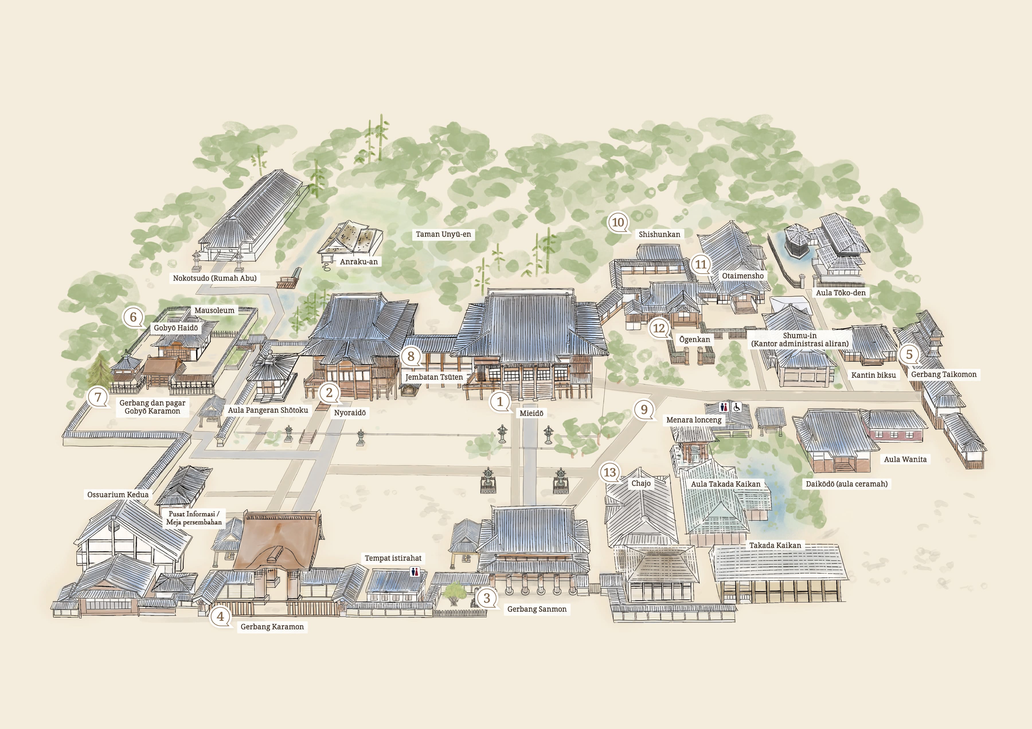Peta kompleks kuil dapat diperbesar atau diperkecil
