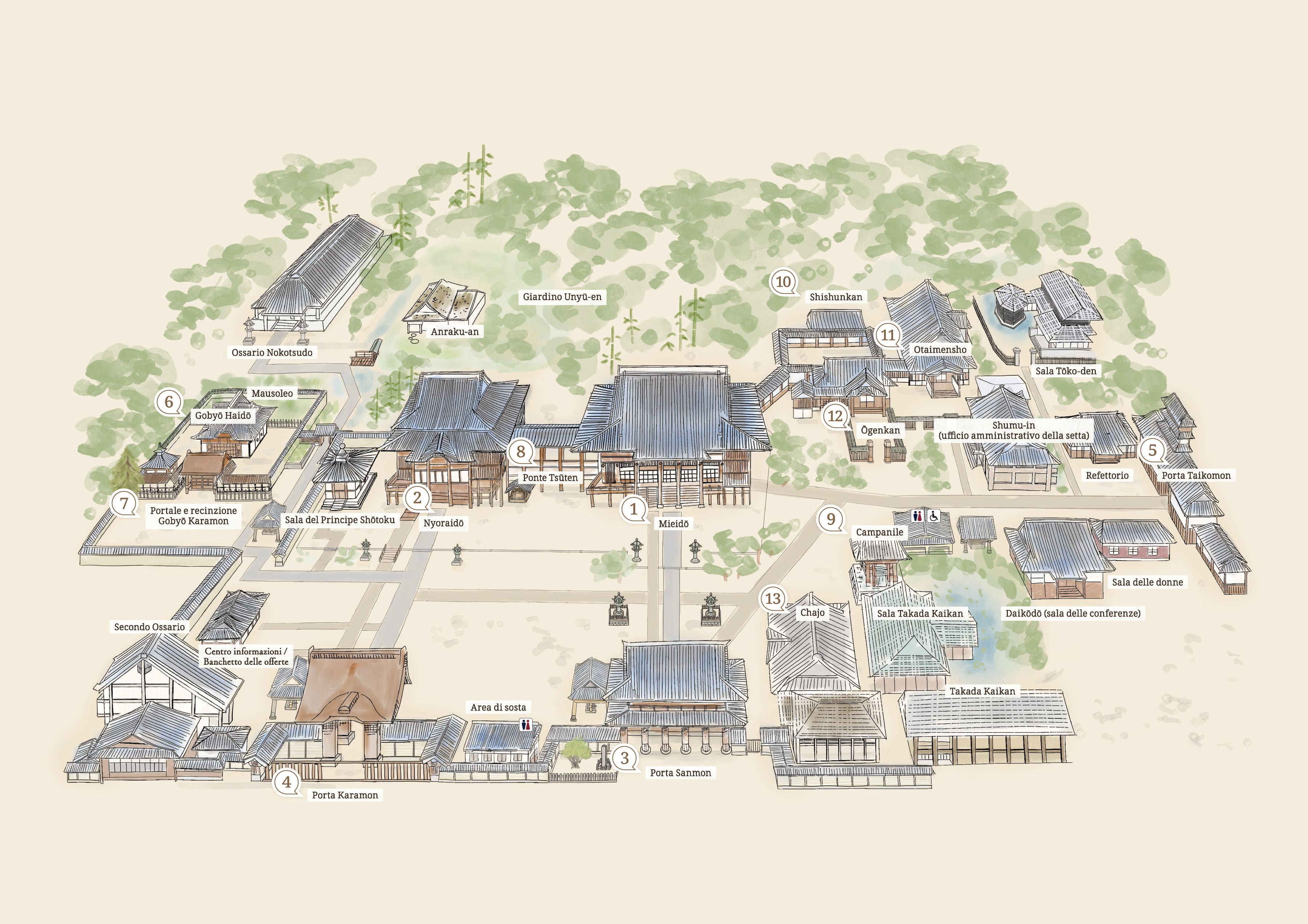 È possibile ingrandire o rimpicciolire la mappa del complesso del tempio