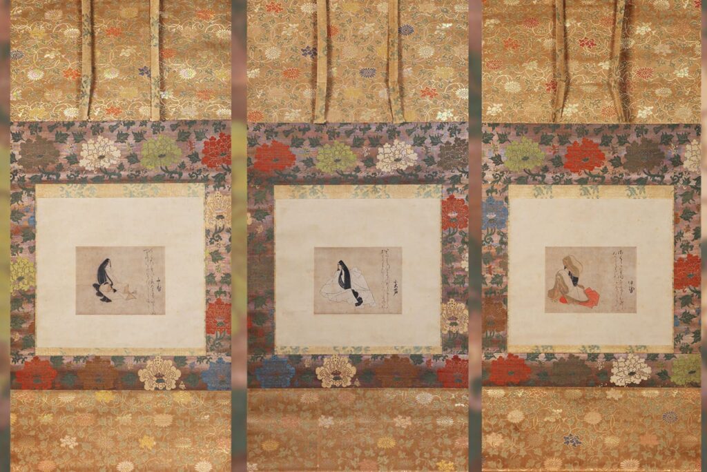 ภาพวาดเหล่านี้เป็นส่วนหนึ่งของชุดภาพวาดที่เรียกว่า "สามสิบหกอรหันต์แห่งบทกวี" ซึ่งถูกสร้างขึ้นในช่วงต้นยุคคามาคุระ (ค.ศ. 1185–1333) วัดเซ็นจุจิได้เก็บรักษาภาพม้วนสามภาพจากชุดนี้ไว้ ภาพวาดเหล่านี้แสดงถึงกวีสตรีผู้มีชื่อเสียง ได้แก่ อิเสะ (ค.ศ. 872?–938?), โคได โนะ คิมิ (ไม่ทราบปี), และนาคาซึคาสะ (ค.ศ. 912?–988?) ลักษณะเด่นของภาพวาดคือ ฝีแปรงที่ละเอียดอ่อนและซับซ้อน โดยวาดด้วยสีที่ละเอียดอ่อนและงดงามบนแผ่นกระดาษขนาดเล็กสไตล์ชิกิชิ พร้อมด้วยโคลงวากะของกวีแต่ละคนจารึกไว้ทางด้านขวา